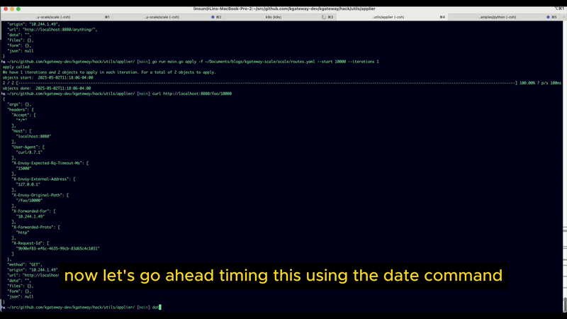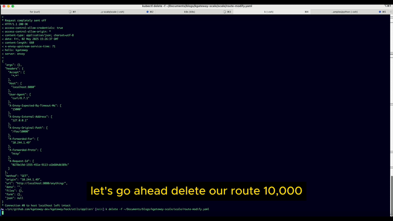 curl http://localhost:8080/foo/9999- Add the 10,001st route and backend, and check if the request to the newly added route is effective immediately.